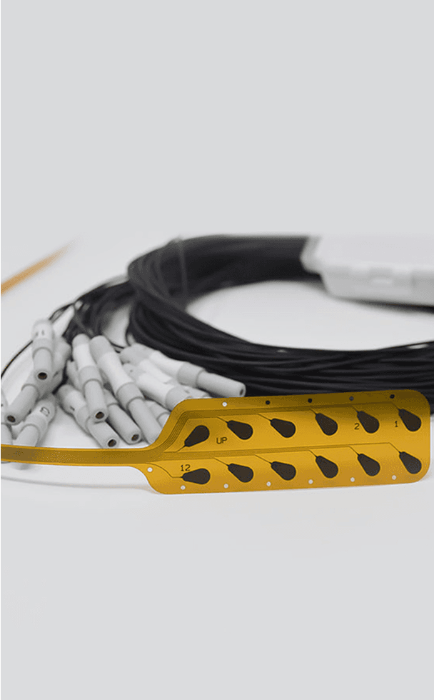 Proprietary cable assembly for the Evo® Cortical Electrode with a zero force connection box and standard DIN42802 touch-proof connectors compatible with standard headboxes.